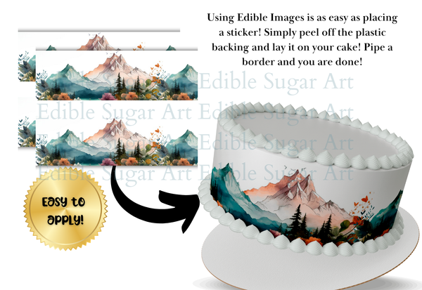 Mountain Scenery Wedding Cake Wrap, Mountain Border, Mountain Wedding Decorations