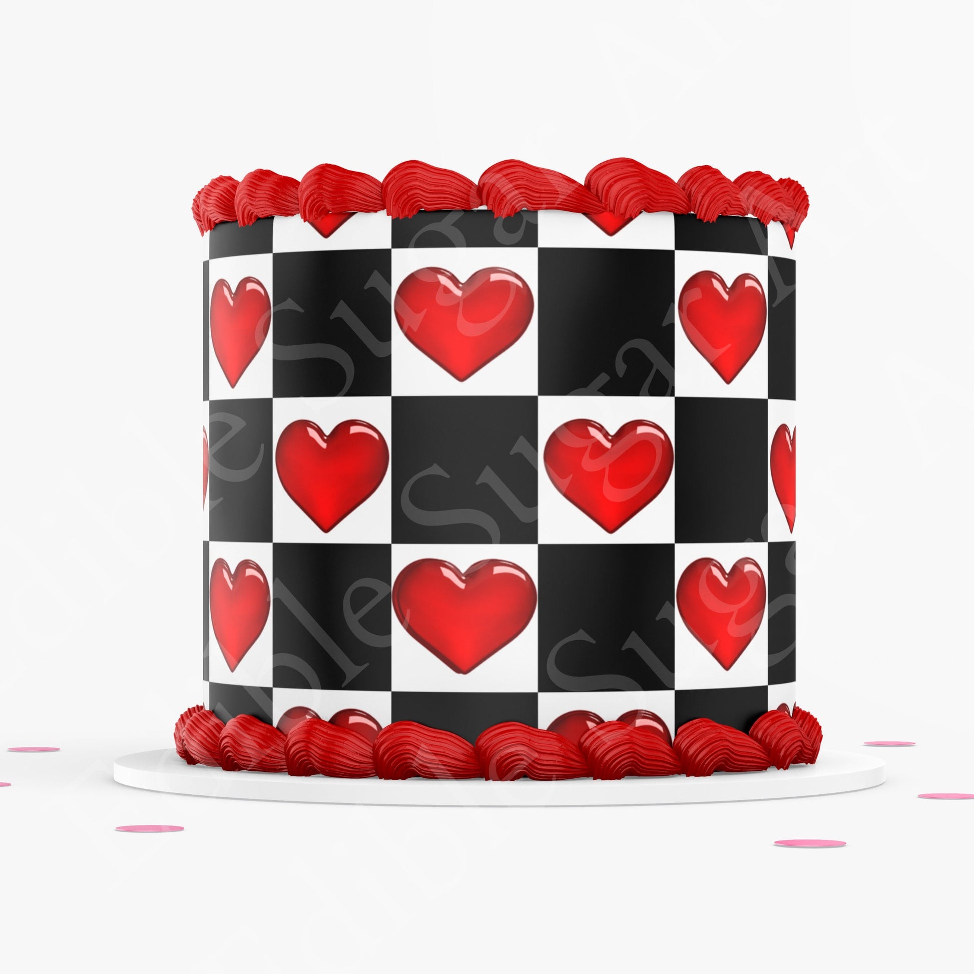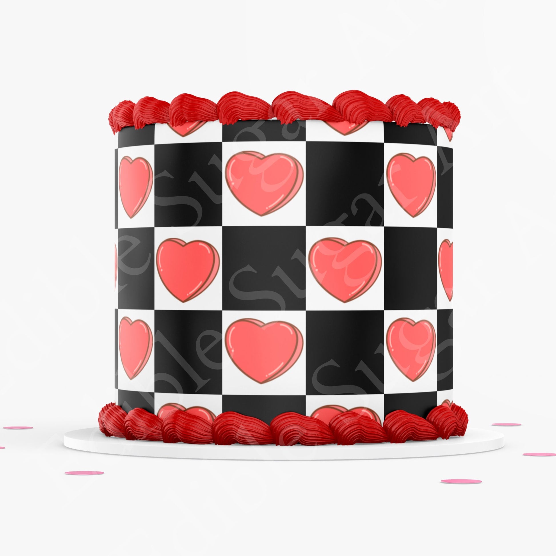 VALENTINE'S DAY CAKE Topper Cake Wrap Valentines Day Edible image Heart Cake topper checker board heart pattern cake topper edible image